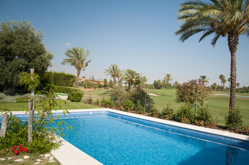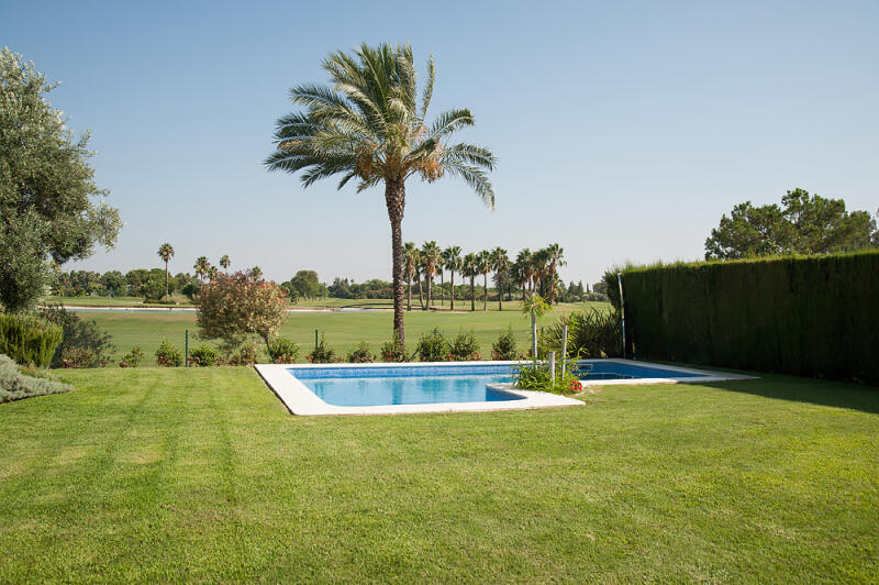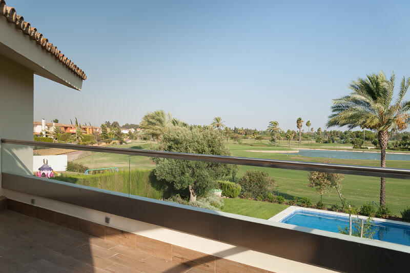 You will not be able to find another like it. LUXURY villa in the most exclusive urbanization of Seville, the Real Club de Golf. UNBEATABLE LOCATION on the first line of the golf course with IMPRESSIVE VIEWS of the golf course, the best views of the urbanization. BRIGHTNESS, STYLE, COMFORT, TRANQUILITY, PEACE and SOSIEGO is what this house transmits from the moment you set foot inside, all with LUXURY QUALITIES: Technal metal carpentry, oak laminated flooring, stuccoed walls, ceilings covered with wood, central heating with Runtal radiators, centralized air conditioning throughout the house, Scavolini Italian kitchen, Trentino and Jacob de la Font bathrooms etc… Can you ask for more? Chalets there are many, but none like this one. The difference is in its details, in its qualities, in its privileged location