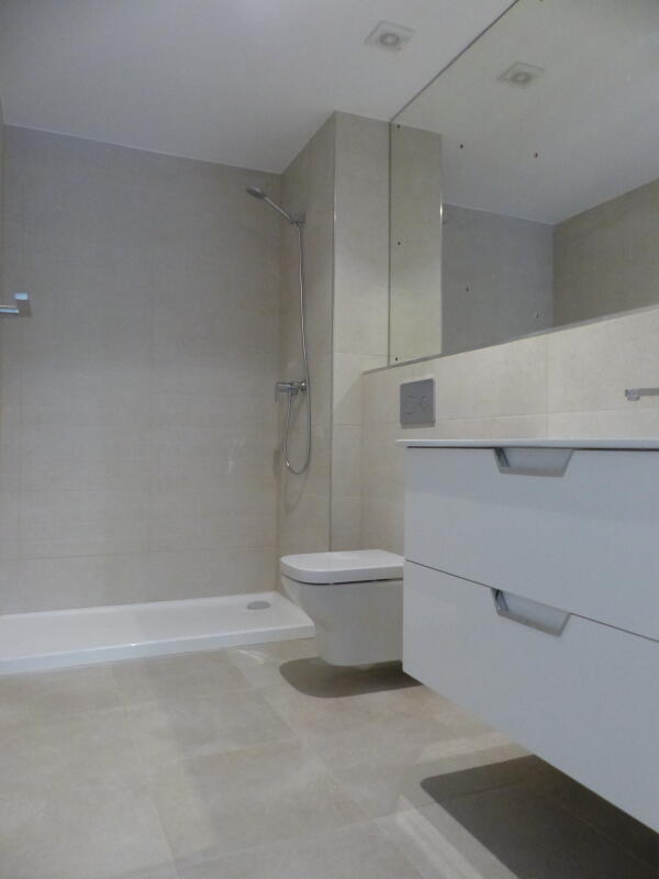 On the right hand side we will find a complete bathroom with shower and a bedroom with bathroom en suite.