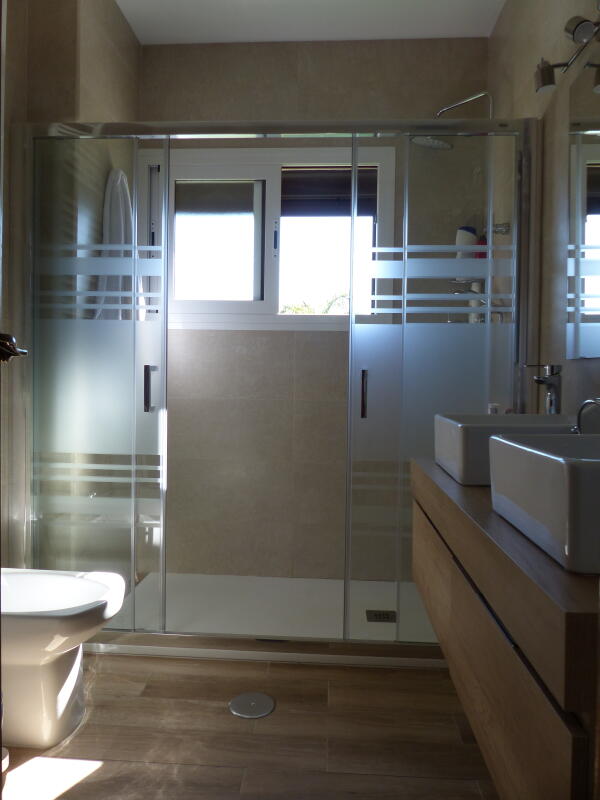 On the same floor, but separate from the main bedroom (five steps higher), is a spacious room with a built-in wardrobe and a full bathroom, perfect for providing privacy for any guest or member of the household.