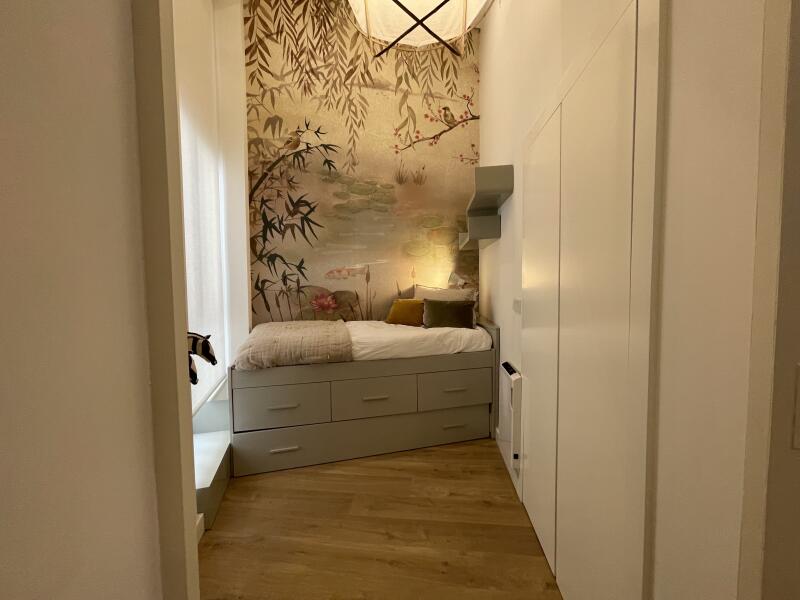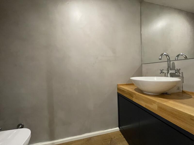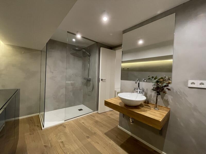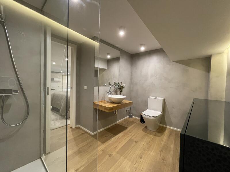 Top quality materials: wooden floors, fiber cement bathroom and toilet walls, walls with wallpaper, blue heat radiators, high-end toilets, air conditioning...