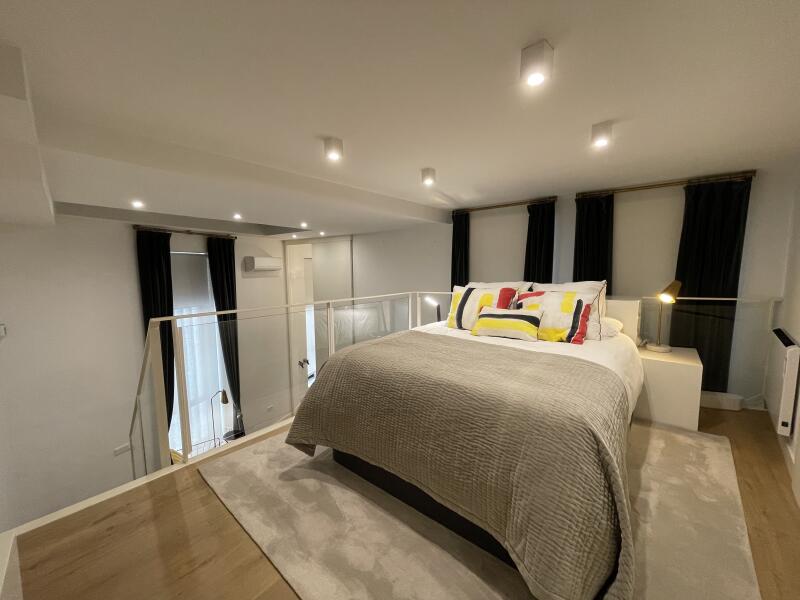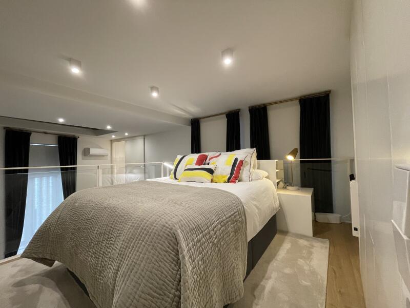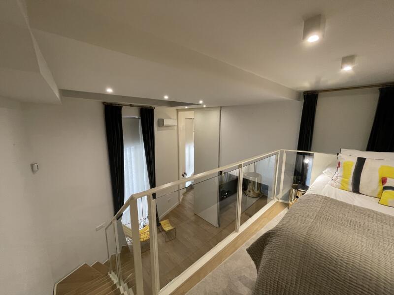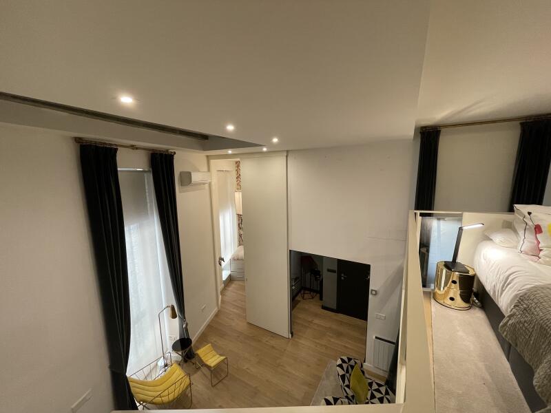 On the upper floor and at double height, the master bedroom with a separate bathroom with fitted wardrobes and a hidden door that gives access to a large bathroom.