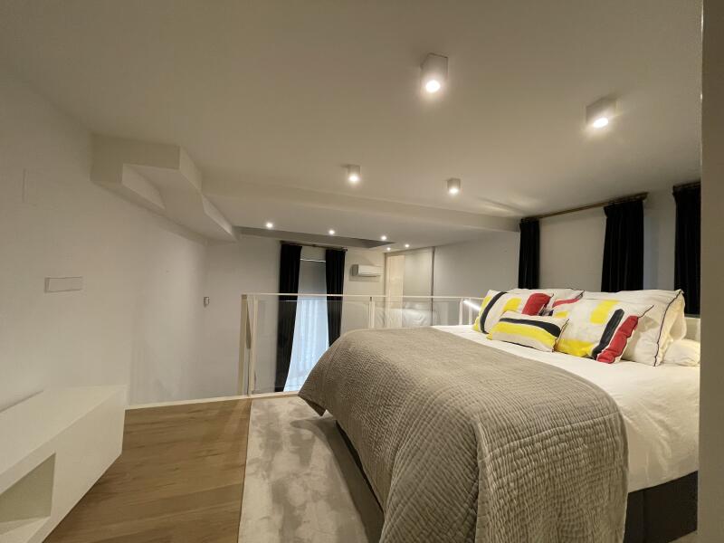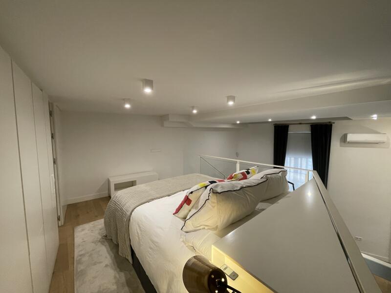 The spaciousness and luminosity of all its rooms stand out due to its open and diaphanous double-height spaces. It is accessed through a beautiful hall that gives access to a large double-height space that serves as a living room, which in turn opens to a large kitchen, all in a single comfortable and very pleasant space. On this same floor a toilet and a separate bedroom with fitted wardrobes.
