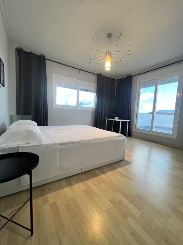 The UPPER FLOOR offers another spacious BEDROOM with a PRIVATE TERRACE and wonderful views, providing extra privacy away from the main living area.