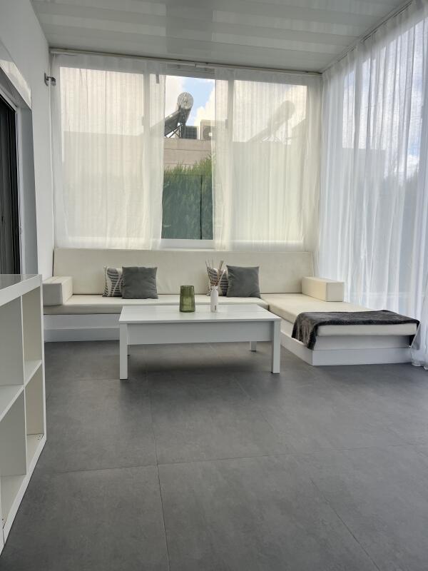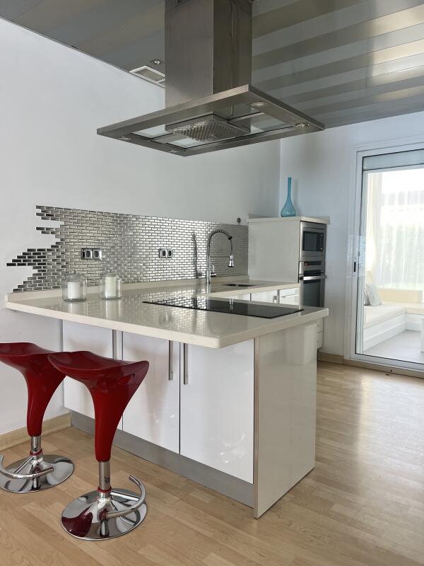 The FULLY EQUIPPED KITCHEN, connected to the living room, features a peninsula and high-quality finishes. It has direct access to a wonderful PORCH, designed as a relaxation area, with GLASS ENCLOSURE, TV, and projector—allowing you to enjoy it both in summer and winter, making the most of every space throughout the year.