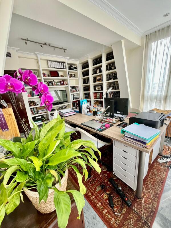 La cocina, de grandes dimensiones, está completamente equipada y dispone de zona office, abundante espacio de almacenaje y una amplia despensa, ideal para el día a día. Además, la vivienda incluye un despacho independiente con capacidad para cuatro puestos de trabajo, perfecto para teletrabajo o uso profesional.
