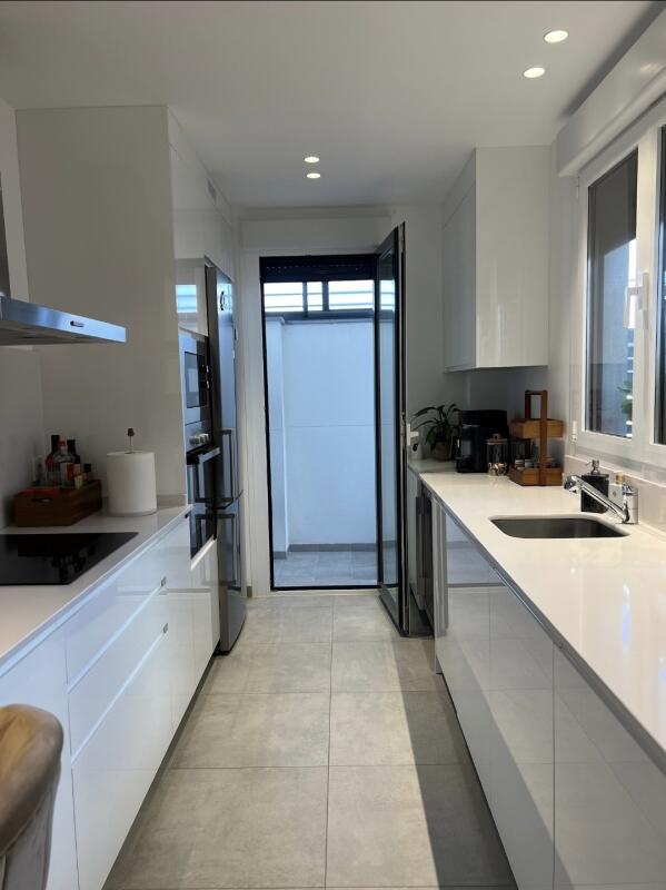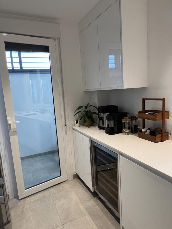 Nos recibe un AMPLIO HALL DE ENTRADA con excelente capacidad de almacenaje, aprovechando el hueco de la escalera que se podría utilizar, incluso, como práctico armario para abrigos. Desde aquí accedemos a la cocina, diseñada al milímetro con MUEBLES DE PRIMERISIMA CALIDAD, barra con zona para sentarse, gran capacidad de almacenaje y ELECTRODOMESTICOS DE PRIMERAS MARCAS, incluyendo FRIGORÍFICO DE 70 CMS DE ANCHO. Completa este espacio un LAVADERO INDEPENDIENTE Y CERRADO por los propietarios, ideal para protegerlo de las inclemencias del tiempo.