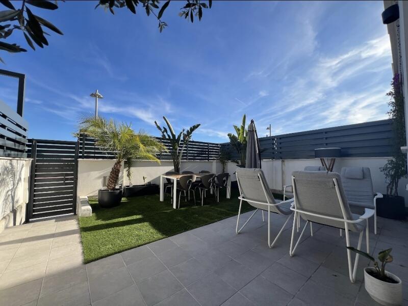 Desde el comedor se accede a un AGRADABLE Y SOLEADO JARDIN DE APROXIMADAMENTE 40 m², con salida directa también a una tranquila calle peatonal. Dispone de una zona de CÉSPED ARTIFICIAL DE PRIMERA CALIDAD, ideal como comedor exterior, y otra zona solada destinada a porche, ampliada esta zona de soleria por los propietarios.