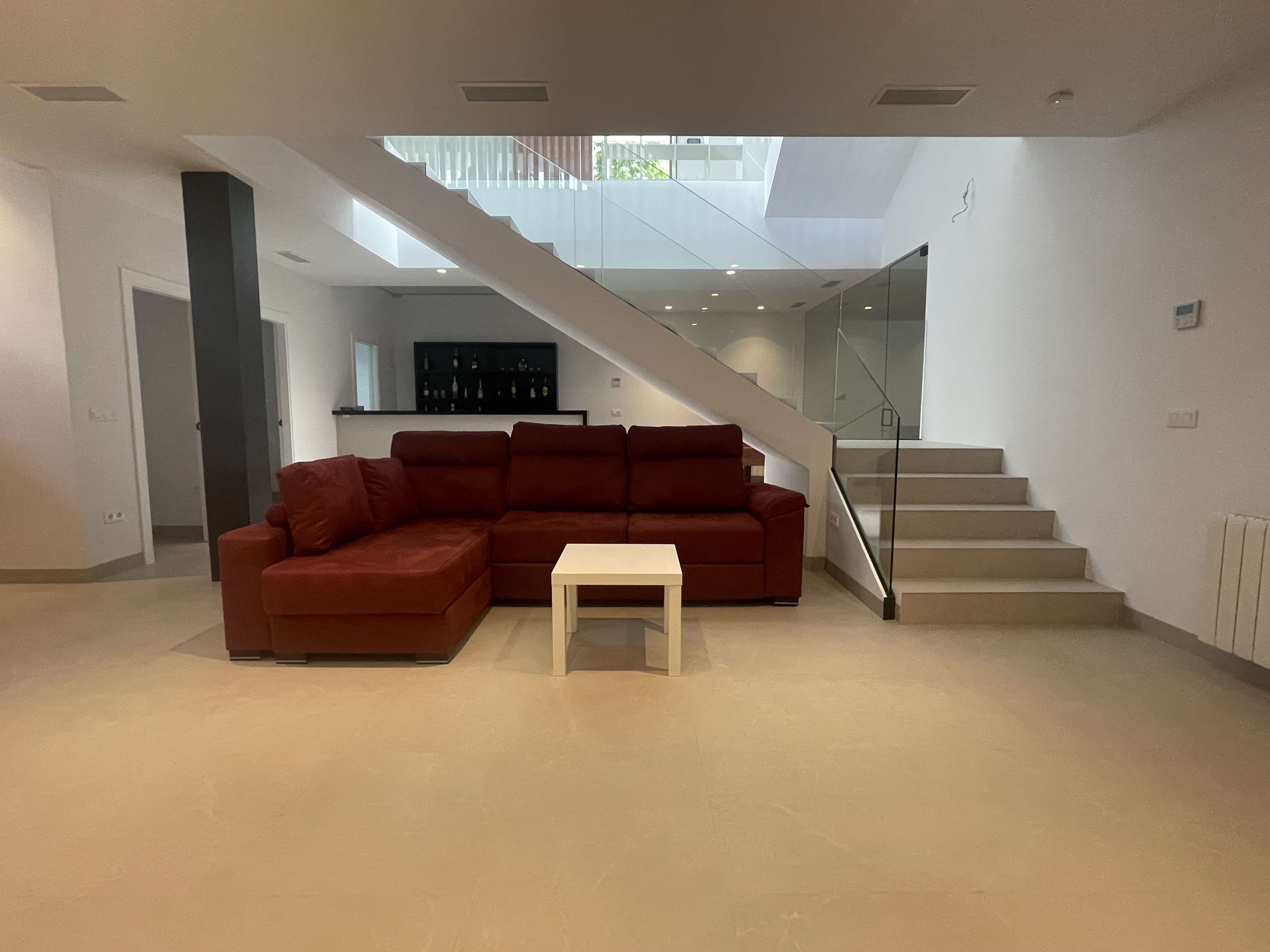 Construido en el año 2021 con materiales de primera calidad, destaca por su arquitectura minimalista, sus espacios amplios, su luz, sus grandes cristaleras que conectan el interior con el exterior como si fuera un único espacio, el cuidado diseño de cada una de sus estancias, y de cada detalle, el minucioso estudio de su iluminación.